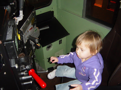 Conductor Ainsley. Though there were multiple full size rail cars Ainsley could explore, she especially liked the one in which she could play conductor. All of the levers and buttons were very intriguing.