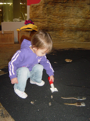 Digging for bones. Dinosaur bones to be clear. We loved the indoor sand-box and playing archaeologist. We took lots of the rubbery black play sand home with us in our shoes.