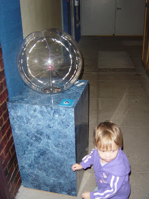 RUN! That thing zapped me. Ainsley was not fond of the ball that makes your hand stand on end. The lightning that reached out to your finger was something Ainsley was just not ready to experience yet. Momma's finger touched it and according to Ainsley it had a "boo-boo" till we reached the next stop.