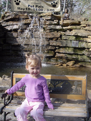 Here I am at the entrance. I loved the waterfall and mom loves my pigtails. My hair is finally growing and this is how we keep it out of my eyes. Mom's getting faster and better at putting them in, today, my part even appeared straight!