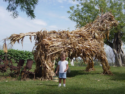 This farm has animals, a corn maze, hay rides, and all sorts of things. They even have geese roaming free which really kind of scared me. Here I am by a hay horse and antique tractor. This was one of the few times I got close to the geese.
